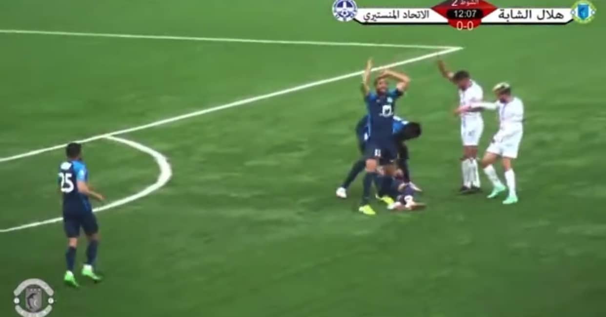 بالفيديو :مشهد يحبس الانفاس لسقوط لاعب هلال الشابة منذ قليل اثر اصطدام مع زميله