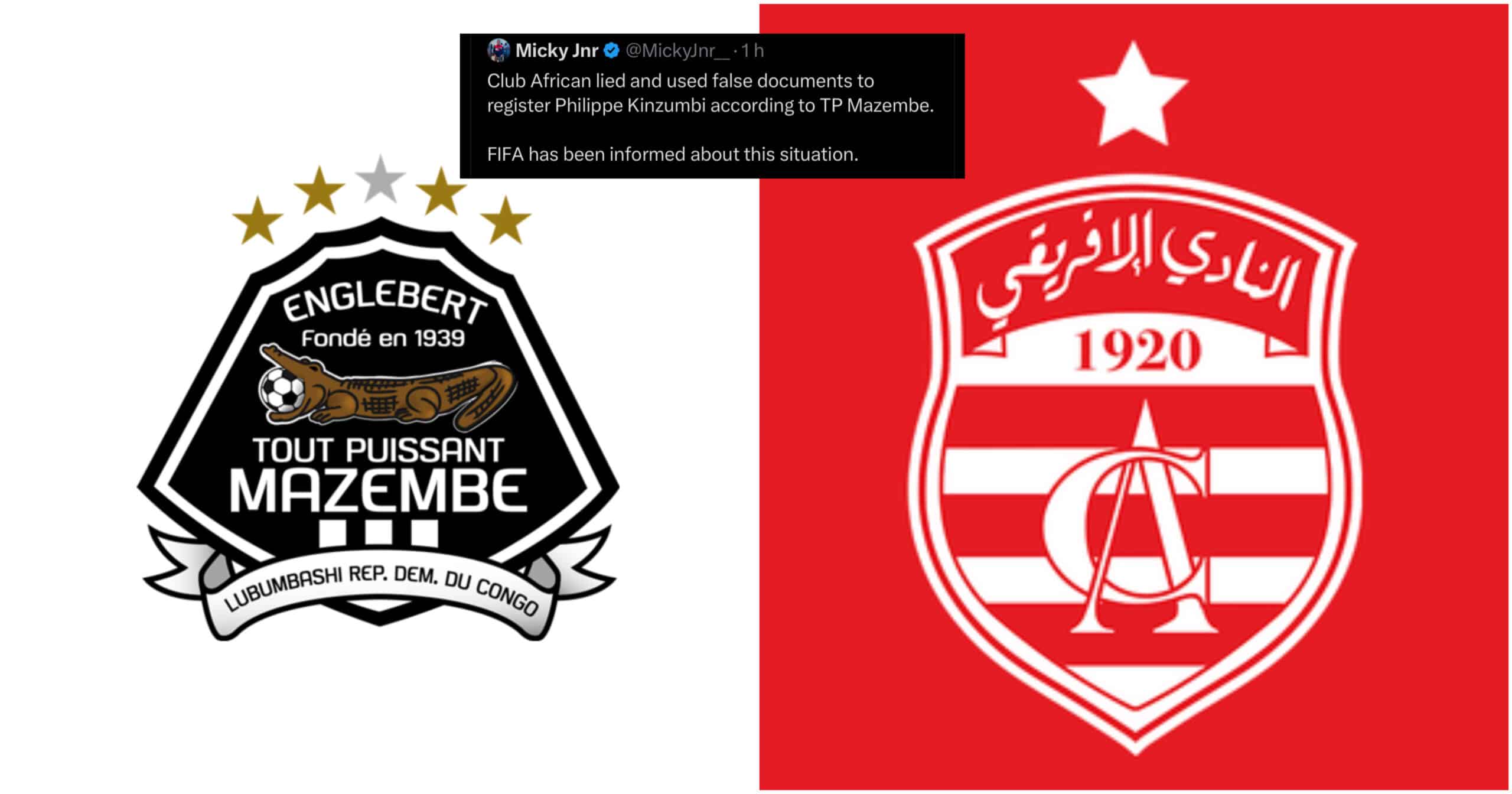 أفاد الصحفي الغاني ميكي جنر، إعلامي الاتحاد الإفريقي لكرة القدم، أن نادي تي بي مازيمبي الكونغولي تقدم بشكوى رسمية إلى الاتحاد الدولي لكرة القدم “فيفا” ضد النادي الإفريقي وتأتي هذه الشكوى على خلفية انتقال اللاعب فيليب كينزومبي إلى صفوف النادي الأفريقي ، حيث يزعم مازيمبي أن الإفريقي استخدم وثائق غير قانونية لتسجيل اللاعب.