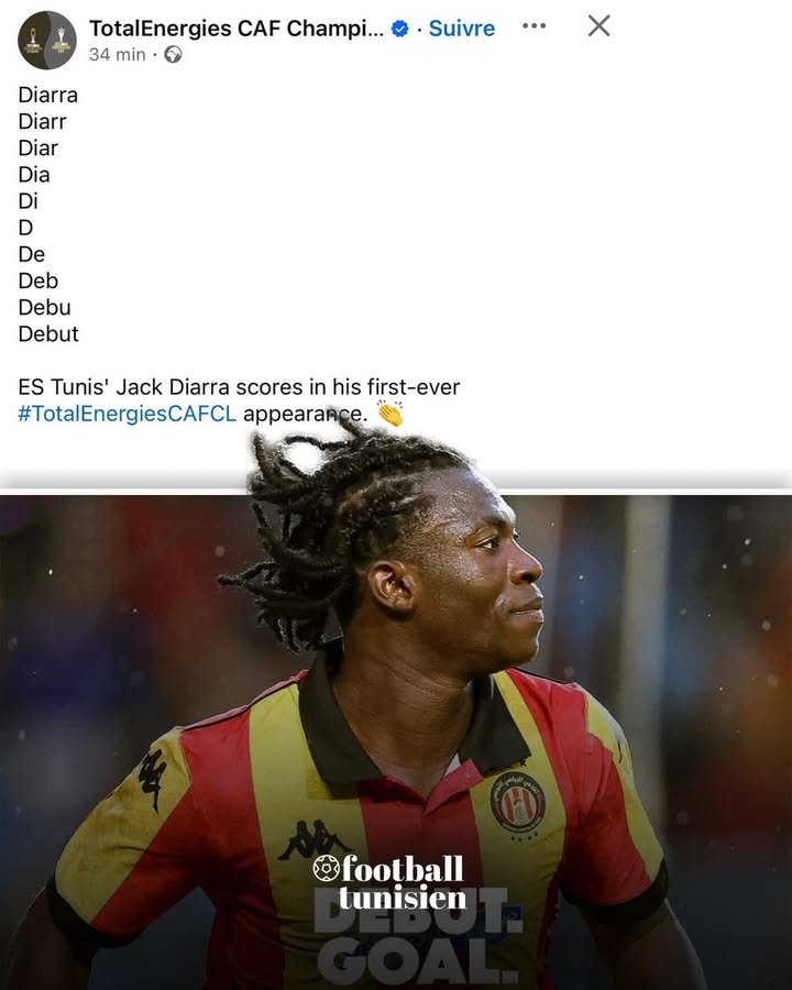 الترجي يتقدم بهدف ديارا 24 يناير 2026 FB import تقدم الترجي في الشوط الأول من المباراة بهدف جاك ديارا، ليصبح score 1-0. شاهد هذا المقال على فيسبوك تعليقات شاركها Facebook Twitter